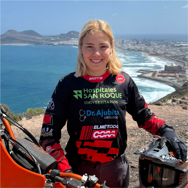 Siendo campeona de canarias de Enduro durante varios años, me convertí en la primera mujer canaria en correr un campeonato Nacional de Enduro, finalizando en la 4ta posición en la última temporada disputada.