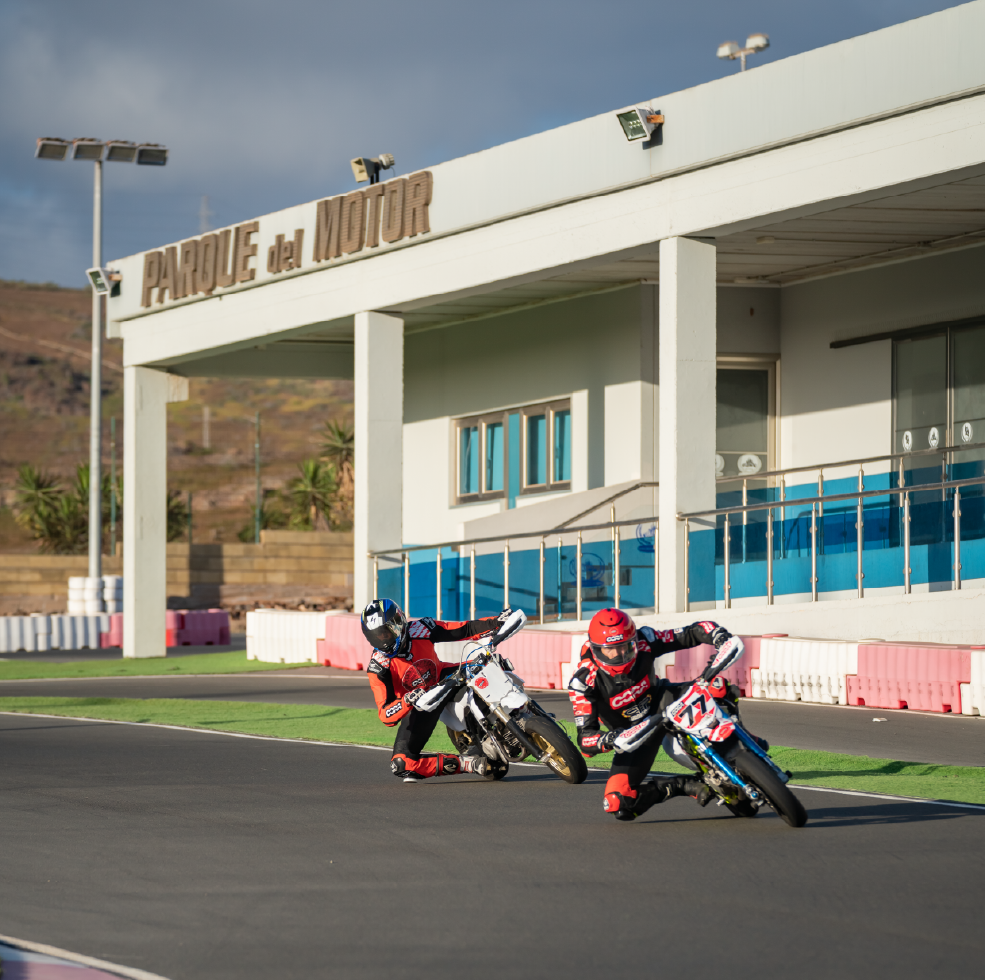 ¿Quieres sentir la adrenalina del circuito como un auténtico piloto? Nuestras rodadas de 3 horas en el Circuito del Parque del Motor en Maspalomas, en el sur de Gran Canaria, son perfectas tanto para quienes se inician como para pilotos con experiencia. Disfruta de una jornada acompañada de un instructor en un entorno seguro y controlado, ideal para mejorar tu técnica y divertirte al máximo.
